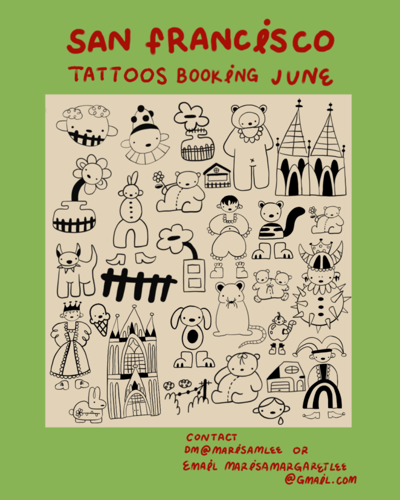 Send me an email with your flash selection to get started with your next tattoo. Email: marisamargaretlee@gmail.com